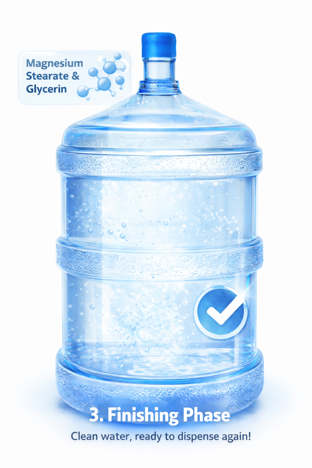 Once rinsed, your jug is chemically neutral, visually clear, and ready to dispense safe drinking water again.